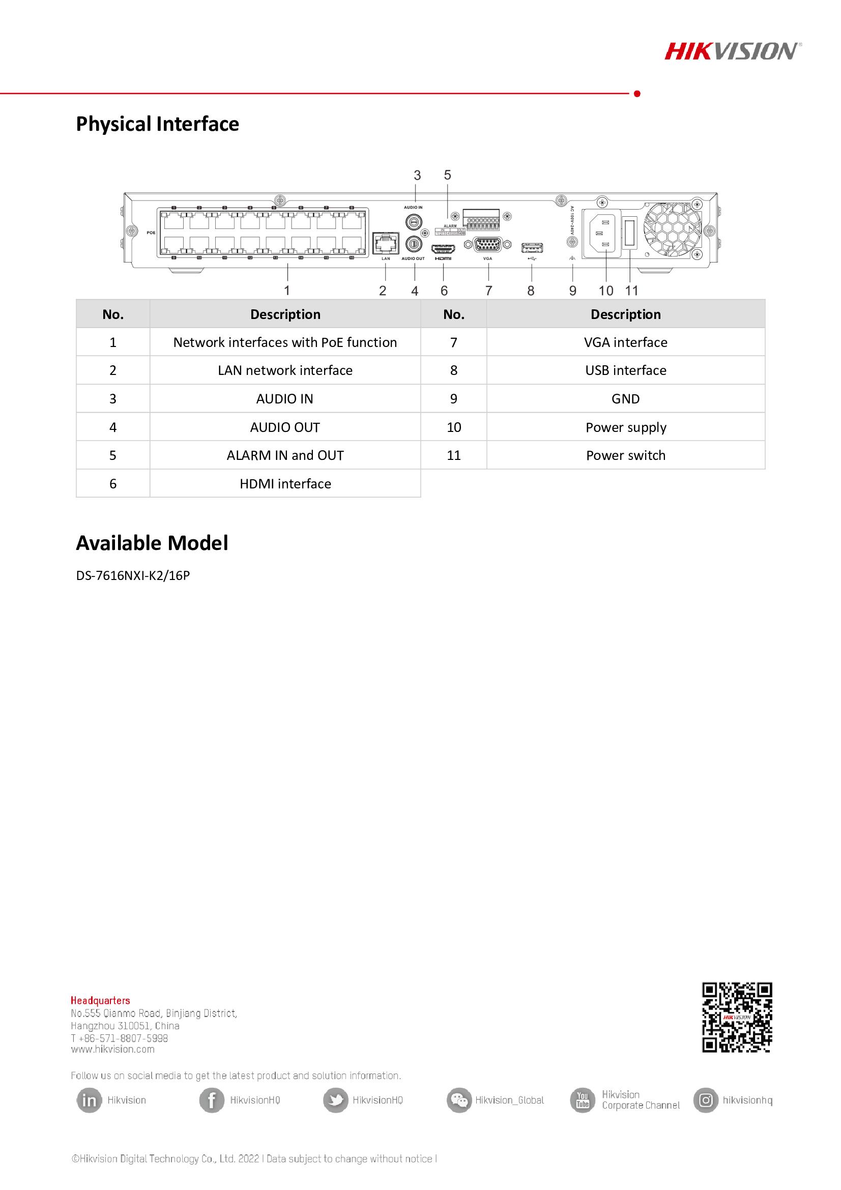الموديل والرمز: DS-7616NXI-K2/16P